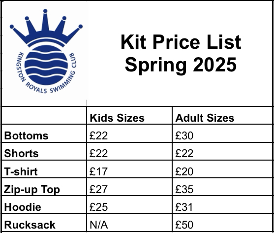equipment and swimwear. Using this link will help raise funds for Kingston Royals Swimming