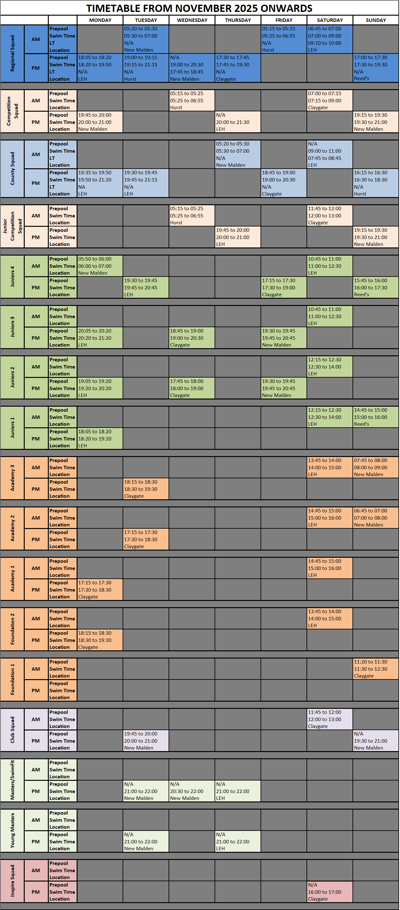 IF YOU WISH TO VIEW THE TRAINING TIMETABLE ON A MOBILE DEVICE - please click here