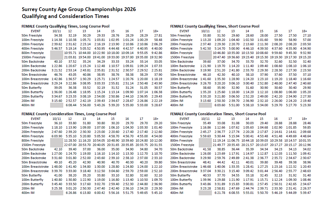 Surrey County Championships 2026 - Qualifying Times Released